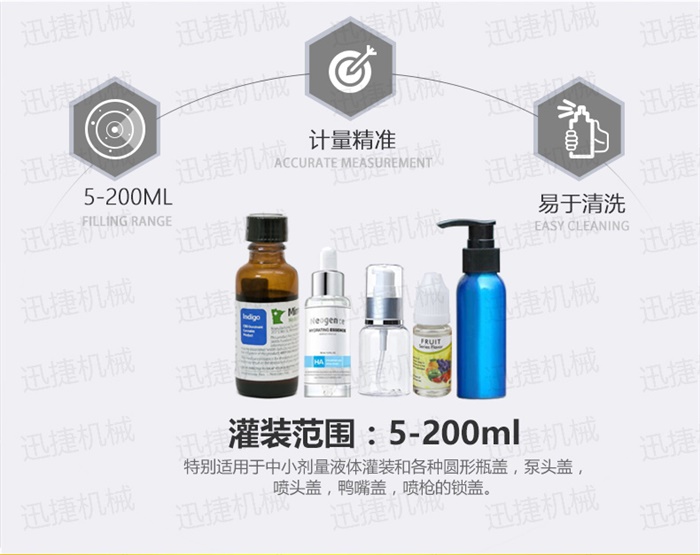 特 點(diǎn):定量灌裝,和瓶蓋旋蓋,在一臺(tái)機(jī)器上完成。具有占地空間小,自動(dòng)化程度高特點(diǎn)