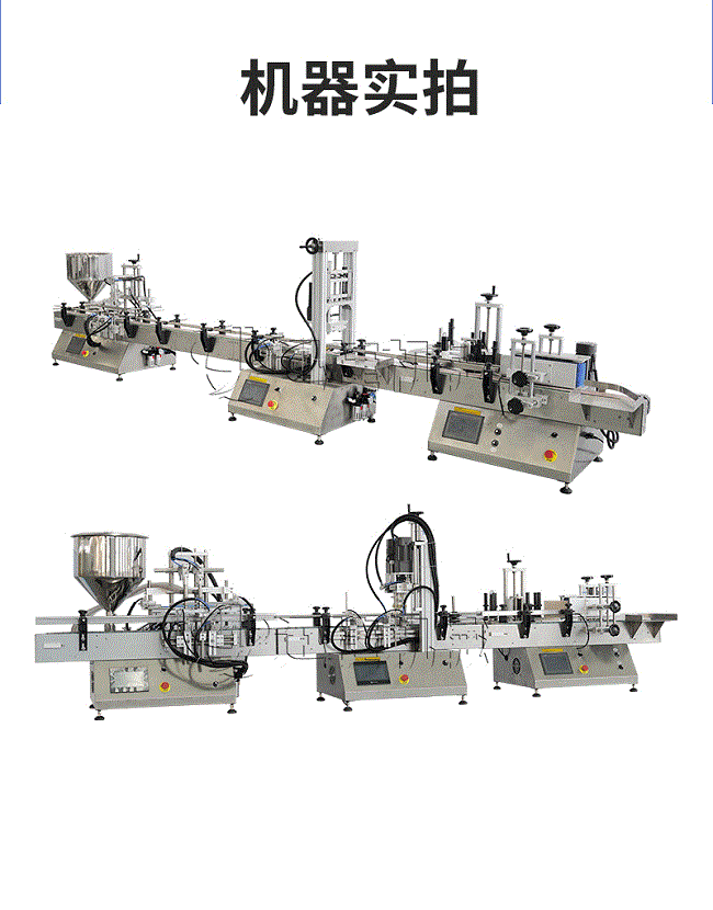 產品說明:生產線根據灌裝范圍選擇型號,灌裝部分為雙頭下潛式灌裝機,適用于不同物料不同瓶子的灌裝,配備自動壓蓋機和圓瓶貼標機,可實現不同蓋子的旋蓋貼標工作。 本設備主要適用于食品、日常化工、農藥、醫藥和特殊行業。灌裝精度將受氣壓的穩定性、物料的均勻性、灌裝速度等的影響。