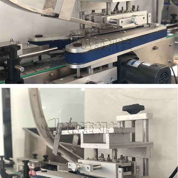 玻璃瓶封口機(jī)設(shè)備采用氣囊式全密封真空式結(jié)構(gòu),旋合式旋蓋原理,真空度可按需設(shè)定。瓶蓋預(yù)旋緊機(jī)構(gòu):理蓋落蓋到瓶口后,對(duì)馬口鐵蓋進(jìn)行預(yù)旋,保證蓋子旋鈕點(diǎn)準(zhǔn)確進(jìn)入到瓶口旋絲內(nèi),100%保證抽真空及旋蓋效果。解決了客戶擔(dān)心真空度的問題。