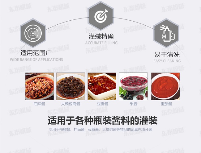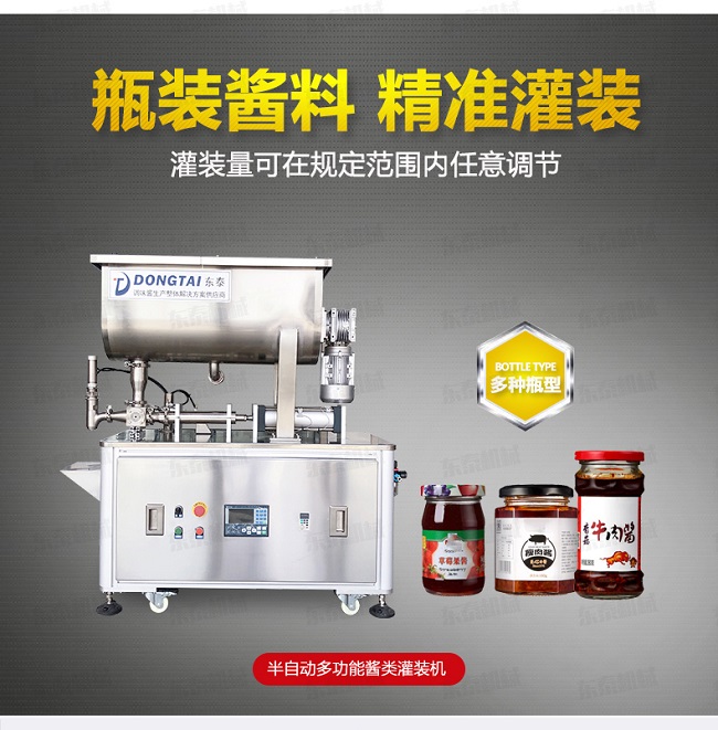 辣椒醬灌裝機(jī)是由我公司自主研發(fā),臥式攪拌,可以很好的解決大顆粒物料灌裝過程中油料分離過快而導(dǎo)致的灌裝誤差大等難題。主要適用于粘稠醬料,如麻辣醬、香辣醬、牛肉醬、豆辨醬、黃豆醬、豆豉醬等醬料產(chǎn)品。在包裝過程中,海鮮醬灌裝機(jī)可以實(shí)現(xiàn)產(chǎn)品從原料進(jìn)入到包裝機(jī)械開始,經(jīng)過一些列生產(chǎn)活動(dòng)構(gòu)成的路線,從而達(dá)到無人化自動(dòng)包裝。如果您有需要,可以和我們聯(lián)系