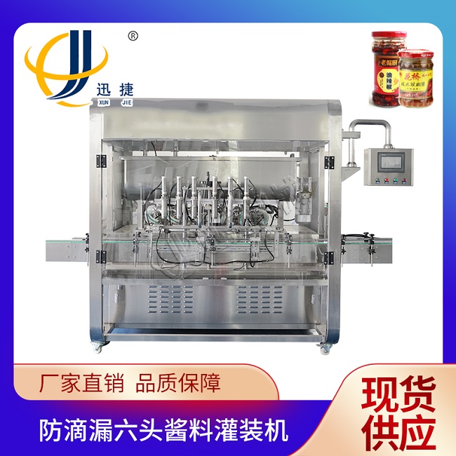 1.香辣醬自動灌裝機的灌裝嘴設(shè)有防滴漏裝置,確保灌裝無拉絲、不會滴漏機