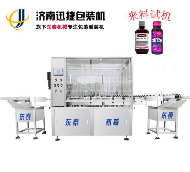 口服液糖漿灌裝機(jī)準(zhǔn)確地來(lái)講叫液體灌裝軋蓋機(jī),因?yàn)榭诜汉吞菨{制劑的灌裝量都比較小,定量準(zhǔn)確性比較好,一般帶有內(nèi)塞等特性,所以選擇灌裝軋蓋機(jī)的比較多。